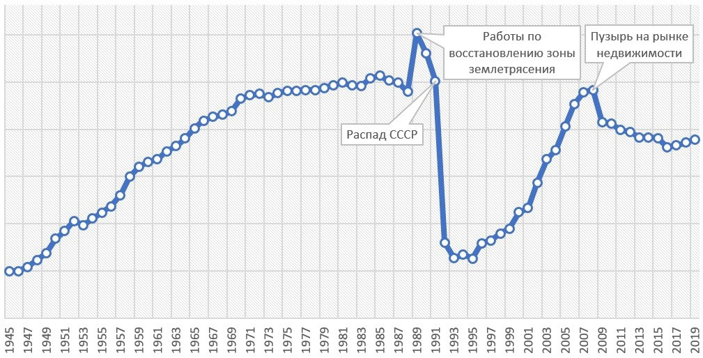 График 4. Динамика объемов строительства в послевоенной Армении