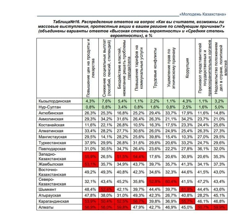 Стоит, однако, отметить два обстоятельства. Согласно исследованию «Молодежь Казахстана», более трети опрошенных считали вероятным проведение массовых акций протеста, причем наивысший протестный потенциал был в городе Алматы и Западно-Казахстанской областях, а наименьший – в городе Нур-Султан. При этом, повышение цен выглядело как один из основных потенциальных триггеров для протестной активности. И действительно, мы видим соответствующую картину на практике.