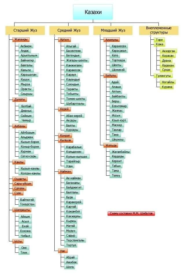 С начала противостояния одной из самых популярных тем стало наличие трех основных жузов среди казахов, и элит, организованных по географическому признаку. Младший жуз живет на западе Казахстана, в нефтеносных регионах, и Жанаозен, самый неспокойный город страны, находится именно там. Старший жуз расселен на юге Казахстана, это другой регион, где также мы видели беспорядки в последнюю неделю (включая г. Алматы), ну а средний жуз, расселенный на севере, вокруг столицы, никак себя не проявил. На этом основании строились предположения, что родоплеменная структура также стала причиной столь острого противостояния. Мы знаем, что в Казахстане сильна региональная идентичность (опрос, стр. 76). Но, по правде говоря, сколько-либо убедительных фактов в пользу этой версии, помимо географической картины протестов, нет, а специалист по Казахстану Андрей Казанцев не считает эту версию убедительной. А с родоплеменной структурой казахского общества можете ознакомиться ниже.