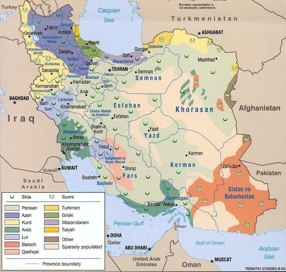 (Карта расселения этноконфессиональных групп в Иране. Упрощенная, но в целом верная для крупных групп).