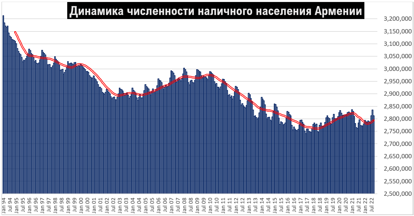 Таким образом, несмотря на определенные колебания, численность населения Армении в последние почти 7 лет оставалась в целом стабильной, но в 2022 году ситуация может измениться слишком быстро.