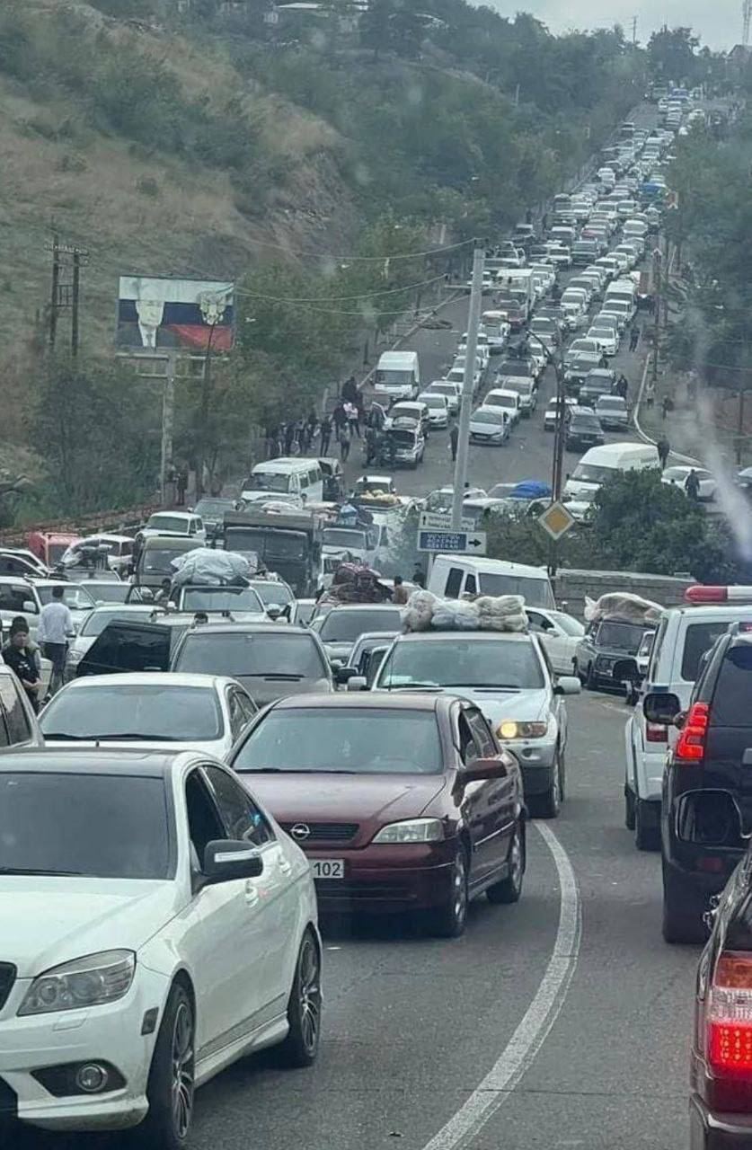 Полностью покинули свои дома жители Мартакертского района. Они выехали частично в Степанакерт, частично уже въехали в Армению. Также свои дома покинули жители Мартунинского района, прибывшие в Степанакерт, а также часть жителей Аскеранского района. Пробка из автомашин растянулась на десятки километров: узкие горные дороги не имеют такой пропускной способности. Так выглядит эта пробка вблизи: