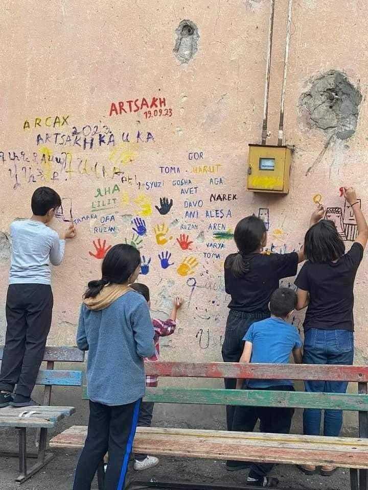 Дети рисуют на стенах своих домов перед отъездом. Алиев, Эрдоган, Пашинян и Путин не хотели, чтобы они могли жить дома.