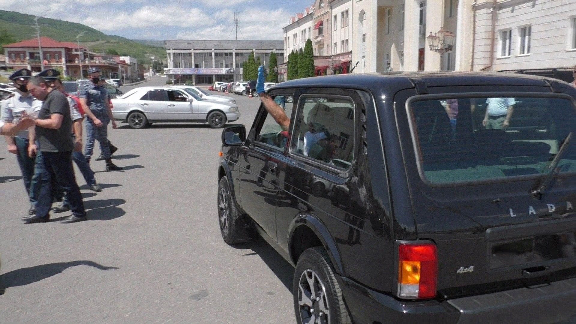 Один из получивших мой друг Лаврент, покатался с ним по Степанакерту.  Новая "Нива" отличная, оборудована кондиционером и неплохо разгоняется.