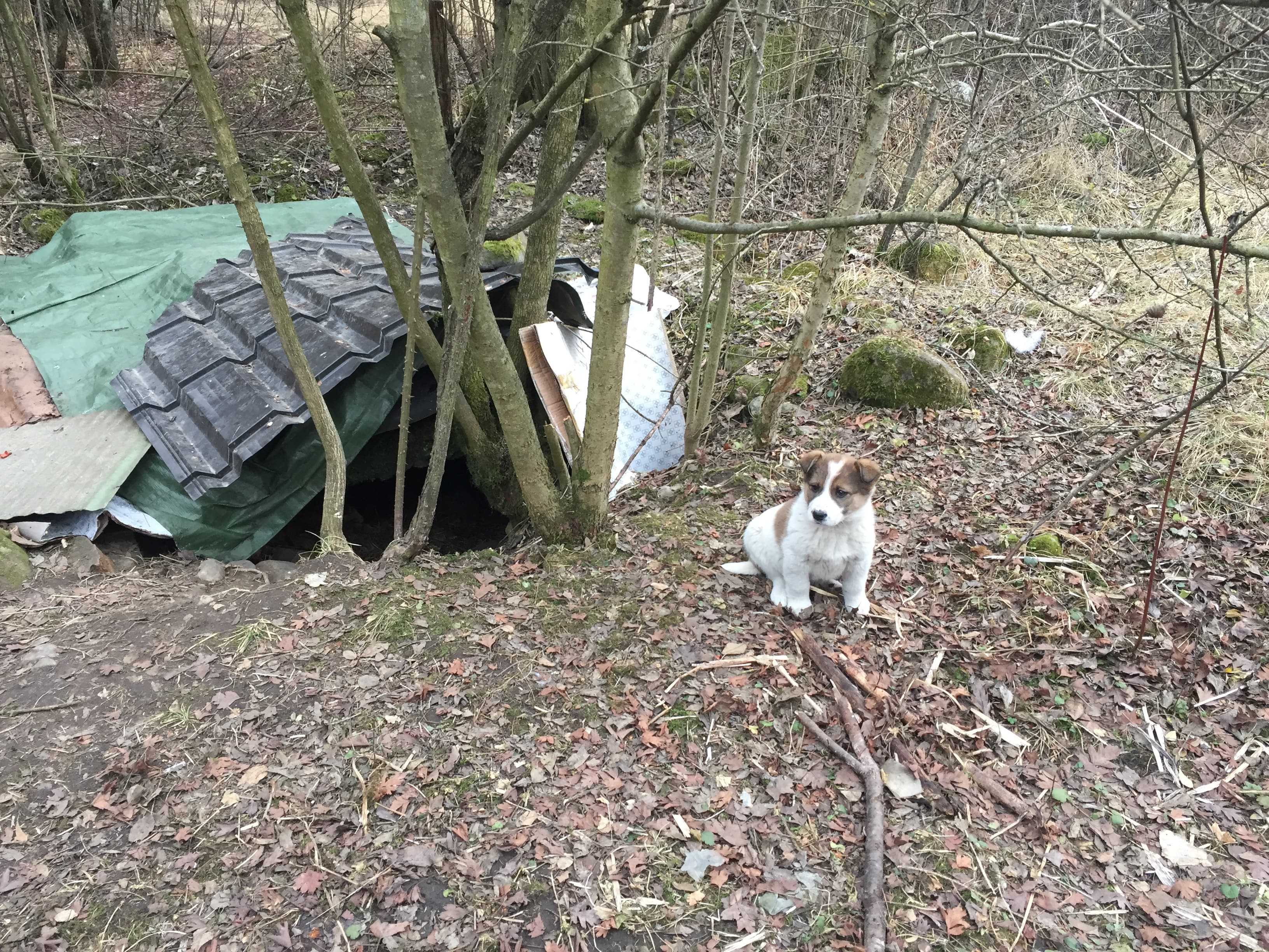 Юсуф показал мне «дикий» приют, устроенный им в парковой зоне города, в районе Долинска. Приют устроен под открытым небом. Вместо домика вырыта яма, она накрыта жестью и имеет вход. Юсуф называет яму «блиндажом». В ней живет собака с щенятами. Приют Эминова располагается в трех местах, недалеко друг от друга. Он рассказывает, что им приходится периодически менять место дислокации – собак избивают, и даже стреляют в них из травматики.