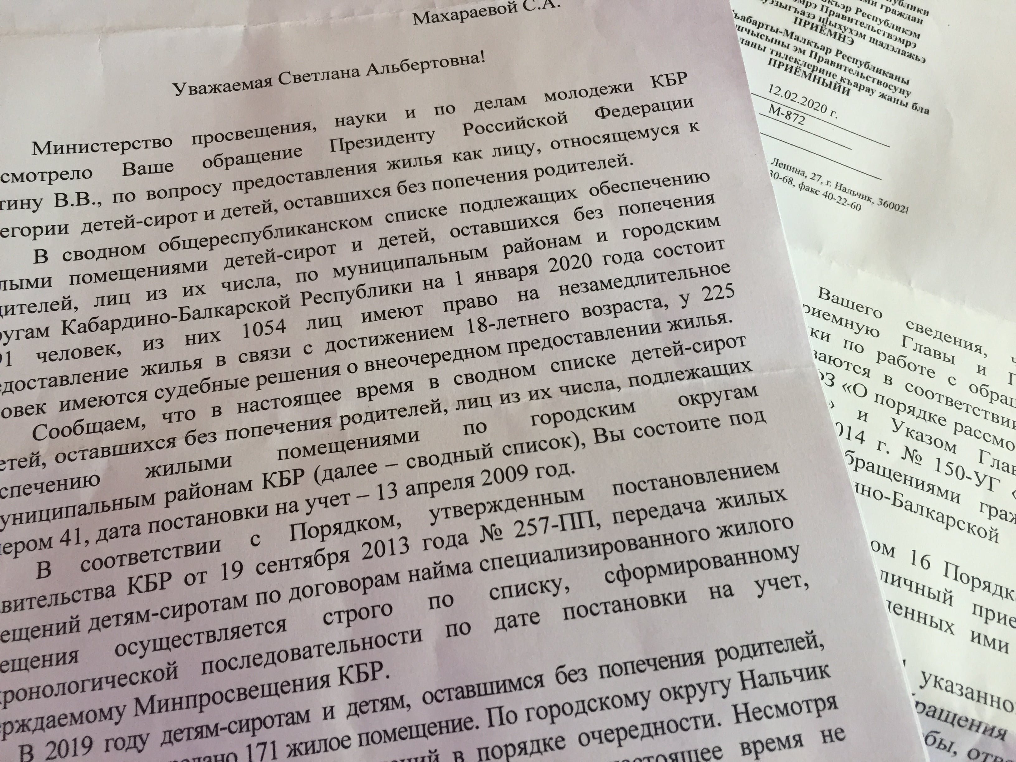Обратились к Уполномоченному по правам ребенка с просьбой о помощи в устройстве младшего ребенка в ясли, чтобы Светлана могла устроиться на работу. У нас приняли письмо. Теперь ждем ответа. Также мы обратились в Общественный народный контроль КБР и попросили содействия в решении ее квартирного вопроса.