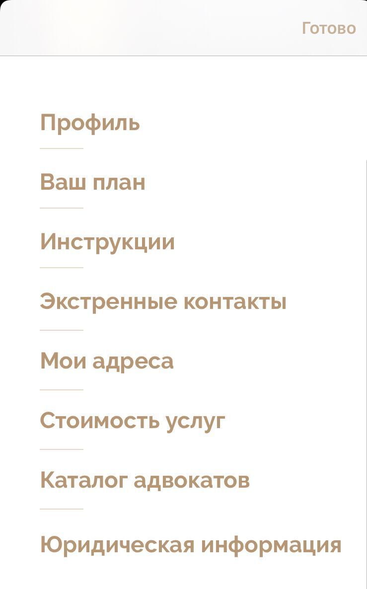 скриншоты - меню приложения Адвоколл: