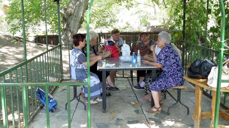 Работники офиса «Анганак» и пенсионеры отдыхают и ждут обеда.