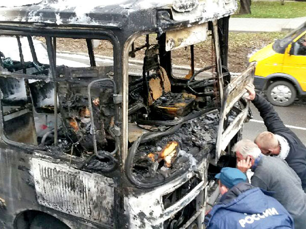 Автобус ПАЗ на перекрестке улиц Льва Толстого и Морозова. Ставрополь, 15 ноября 2013 г. Фоторепортаж корреспондента "Кавказского узла" Юлии Говорухи