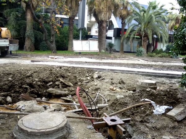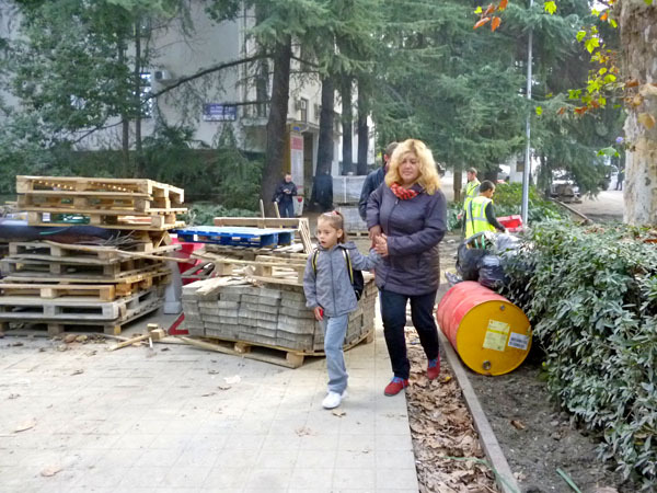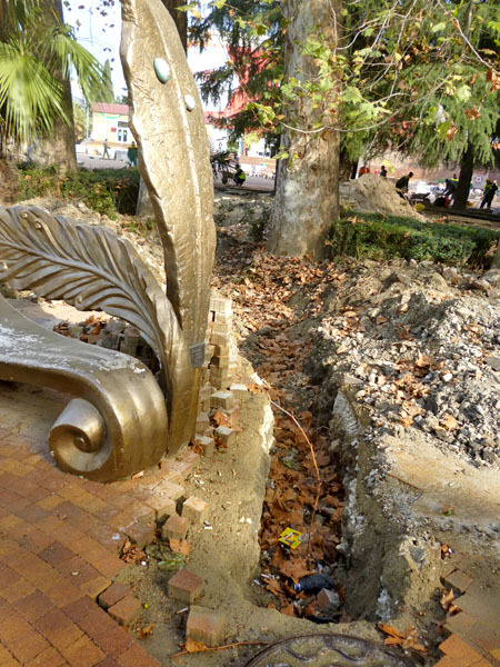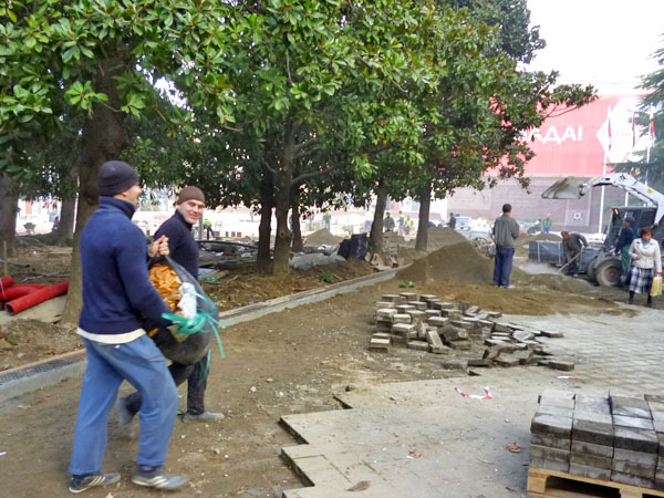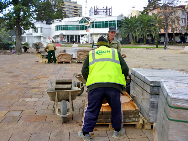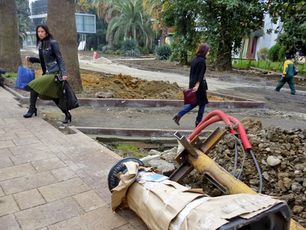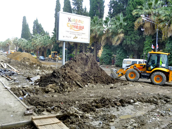 Строительные работы на улице Навагинская напротив администрации Центрального района в День города. Сочи, 21 ноября 2013 г. Фоторепортаж корреспондента "Кавказского узла" Светланы Кравченко