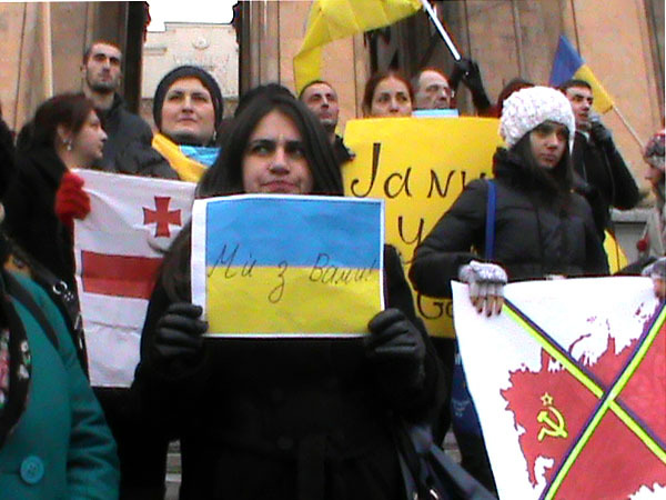 Митинг в поддержку Марша миллионов в Киеве. Тбилиси, 8 декабря 2013 г. Фоторепортаж корреспондента "Кавказского узла" Беслана Кмузова