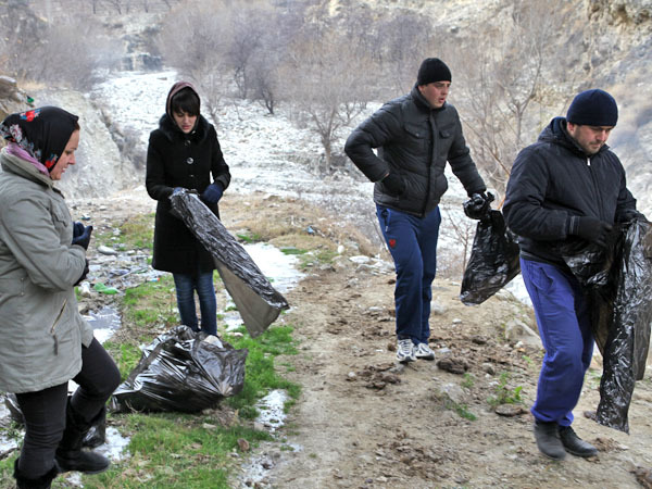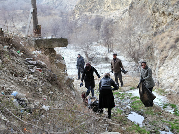 Акция по уборке русла реки Андийское Койсу в районе вершины Ахульго. Дагестан, 8 декабря 2013 г. Фоторепортаж корреспондента "Кавказского узла" Патимат Махмудовой