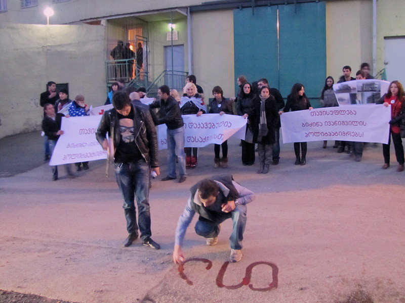 Митинг в поддержку Вано Мерабишвили перед тюрьмой в Исани 30 ноября 2013 года. Фоторепортаж Марины Букия для "Кавказского узла"
