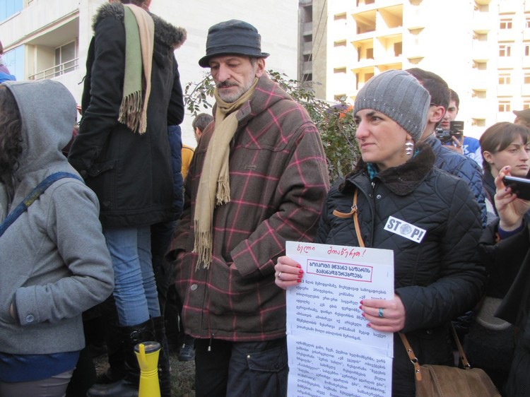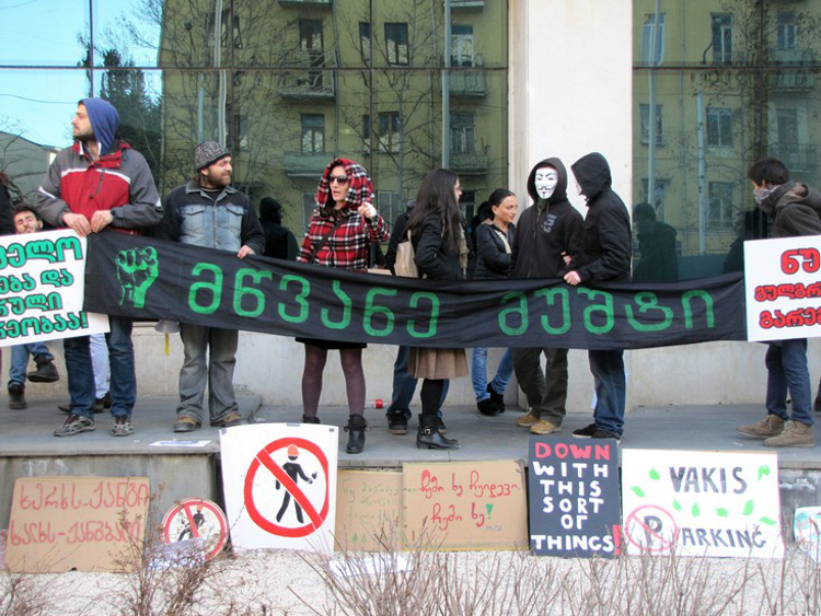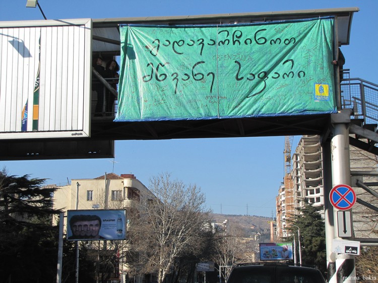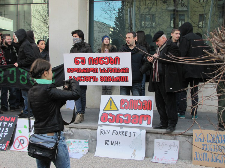 Митинг общественного движения «Партизанское озеленение Тбилиси»(Guerrilla Gardening Tbilisi)перед зданием столичной мэрии 10 января 2014 года. Фоторепортаж Марины Букия для "Кавказского узла".