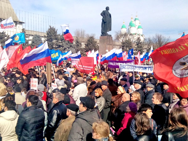 Митинг в поддержку жителей Украины. Астрахань, 9 марта 2014 г. Фоторепортаж корреспондента "Кавказского узла" Елены Гребенюк