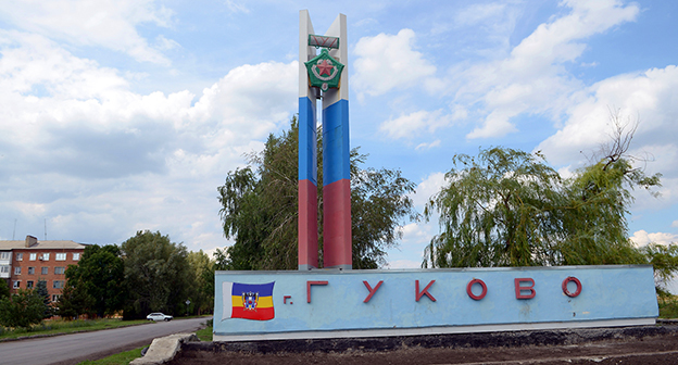 Стела-указатель на въезде в город Гуково, Ростовская область