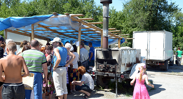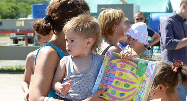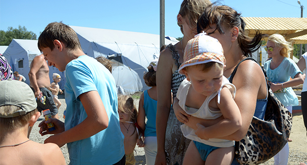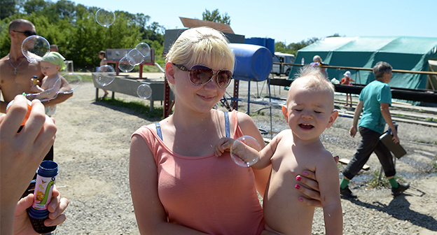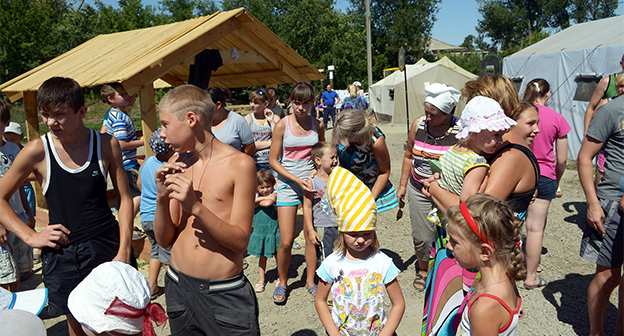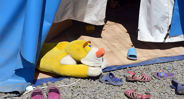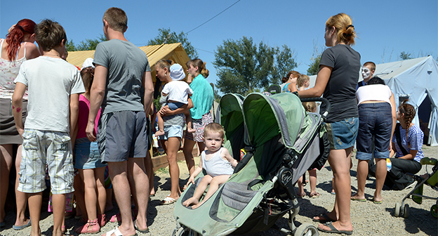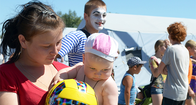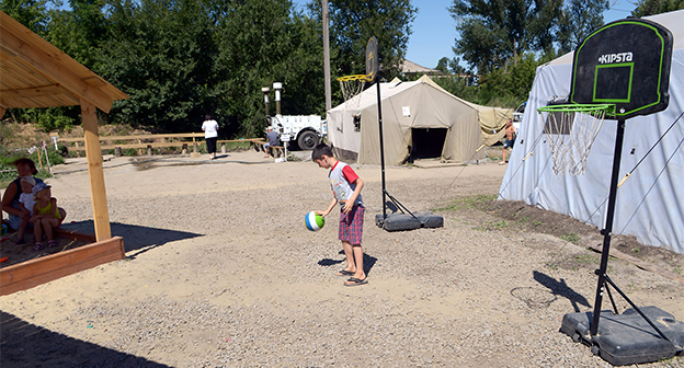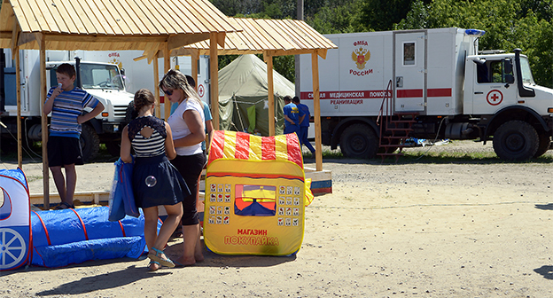 Мороженое, игрушки и клоуны-мимы для 180 детей в палаточном лагере Гуково Фоторепортаж корреспондента "Кавказского узла" Олега Пчелова