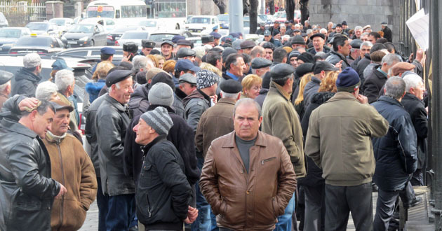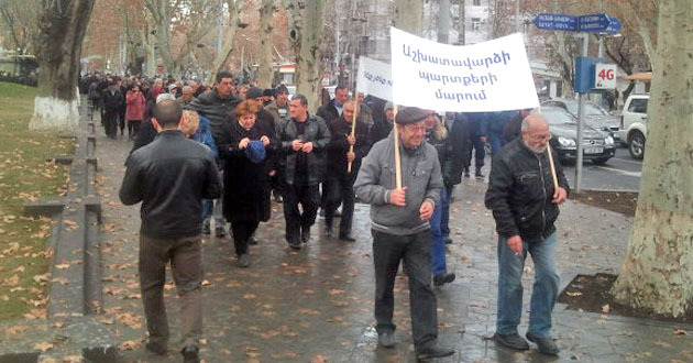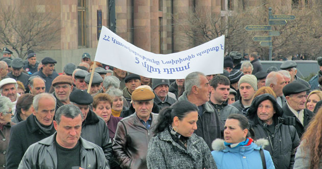 Акция бывших сотрудников завода "Наирит" с требованием погасить долги по зарплате. Ереван, 5 марта 2015 г. Фоторепортаж корреспондента "Кавказского узла" Тиграна Петросяна
