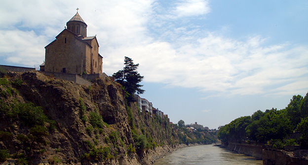 Осушение Куры во время поисковых работ. Тбилиси, 5 июля 2015. Фоторепортаж корреспондента "Кавказского узла" Беслана Кмузова.