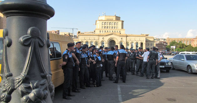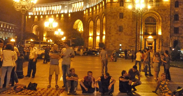 Сидячий пикет на площади Республики против подорожания электроэнергии. Ереван, 30 июля 2015 года. Фоторепортаж корреспондента "Кавказского узла" Армине Мартиросян
