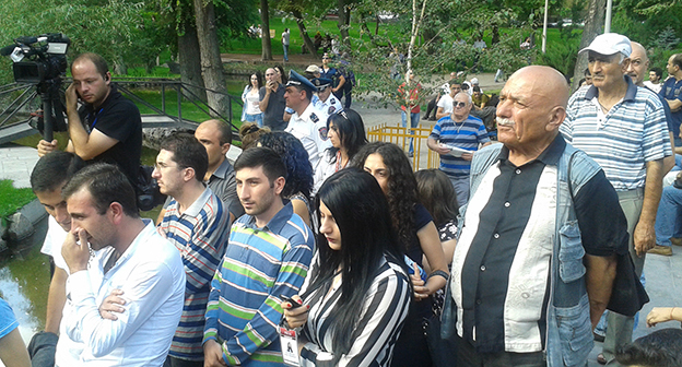 1 сентября сторонники инициативной группы "Нет грабежу!", борющиеся против подорожания электроэнергии, собрались в Парке Влюбленных. Фоторепортаж корреспондента "Кавказского узла" Армине Мартиросян
