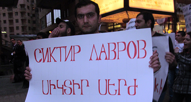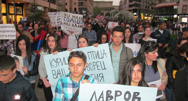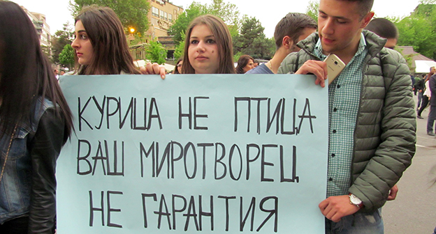 Коктейл Молотова: символичный подарок российским дипломатам. Акция в Ереване 21 апреля 2016 года. Фоторепортаж корреспондента "Кавказского узла" Тиграна Петросяна