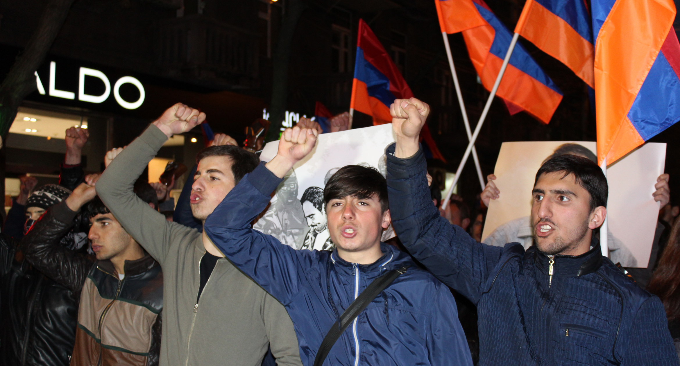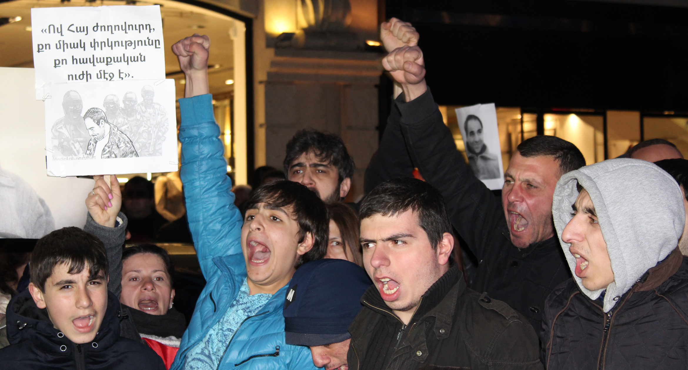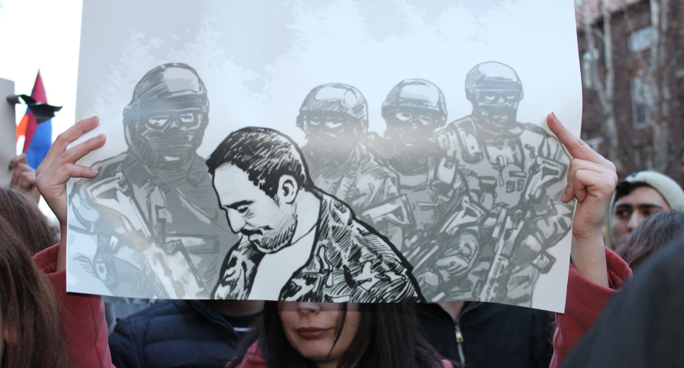 Участница акции протеста с фотографией Артура Саргсяна