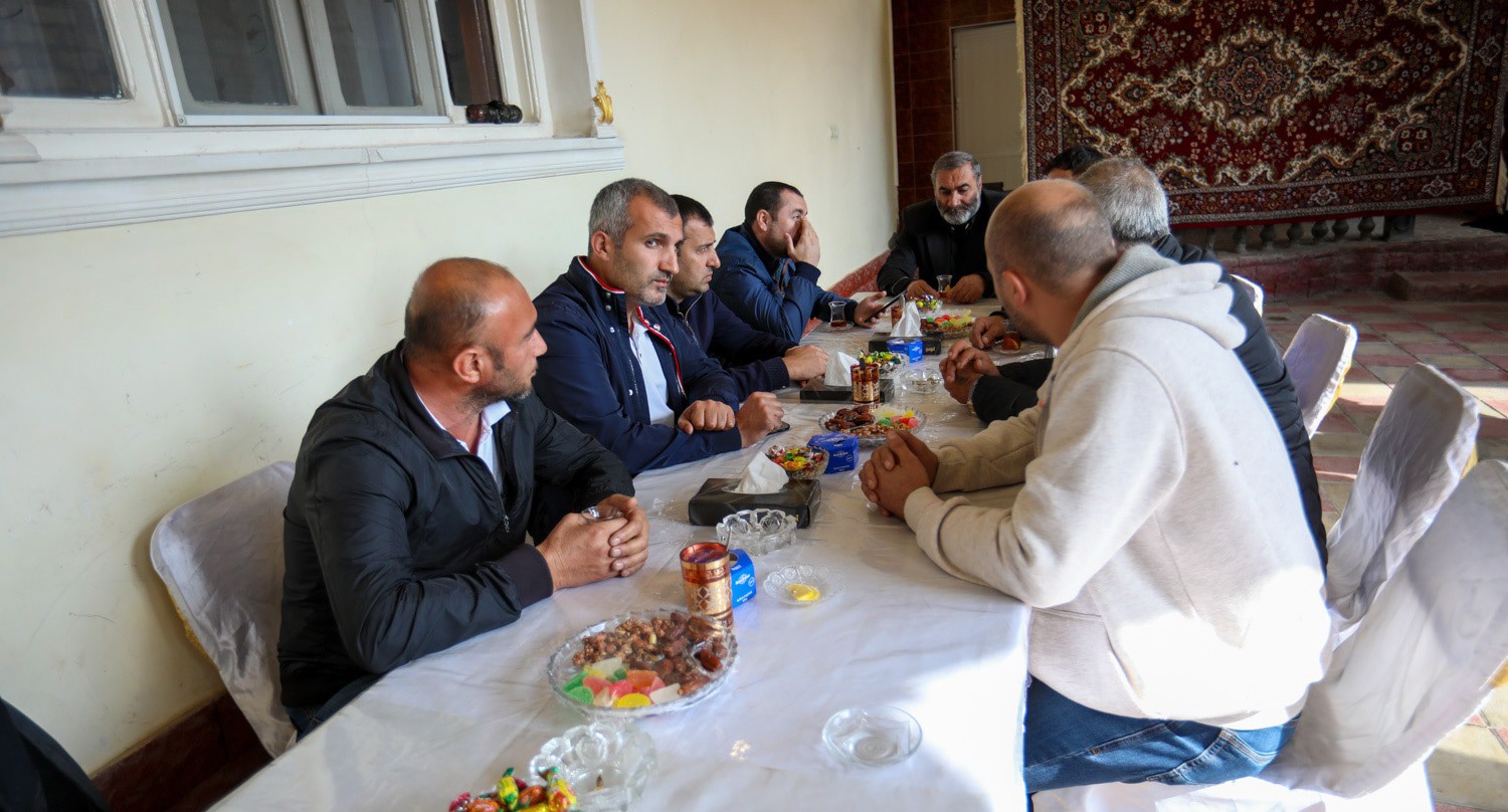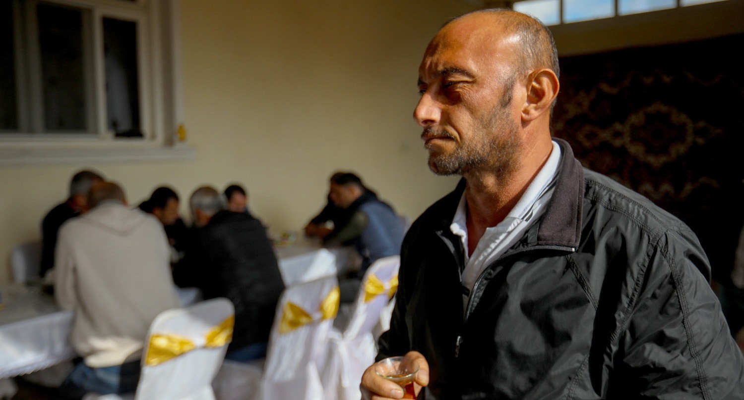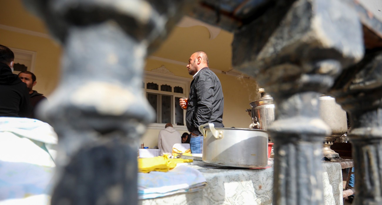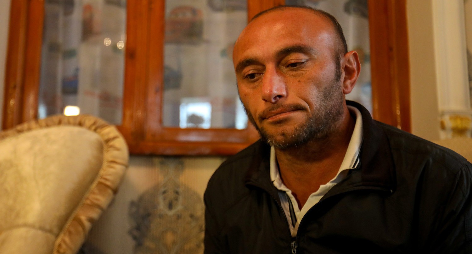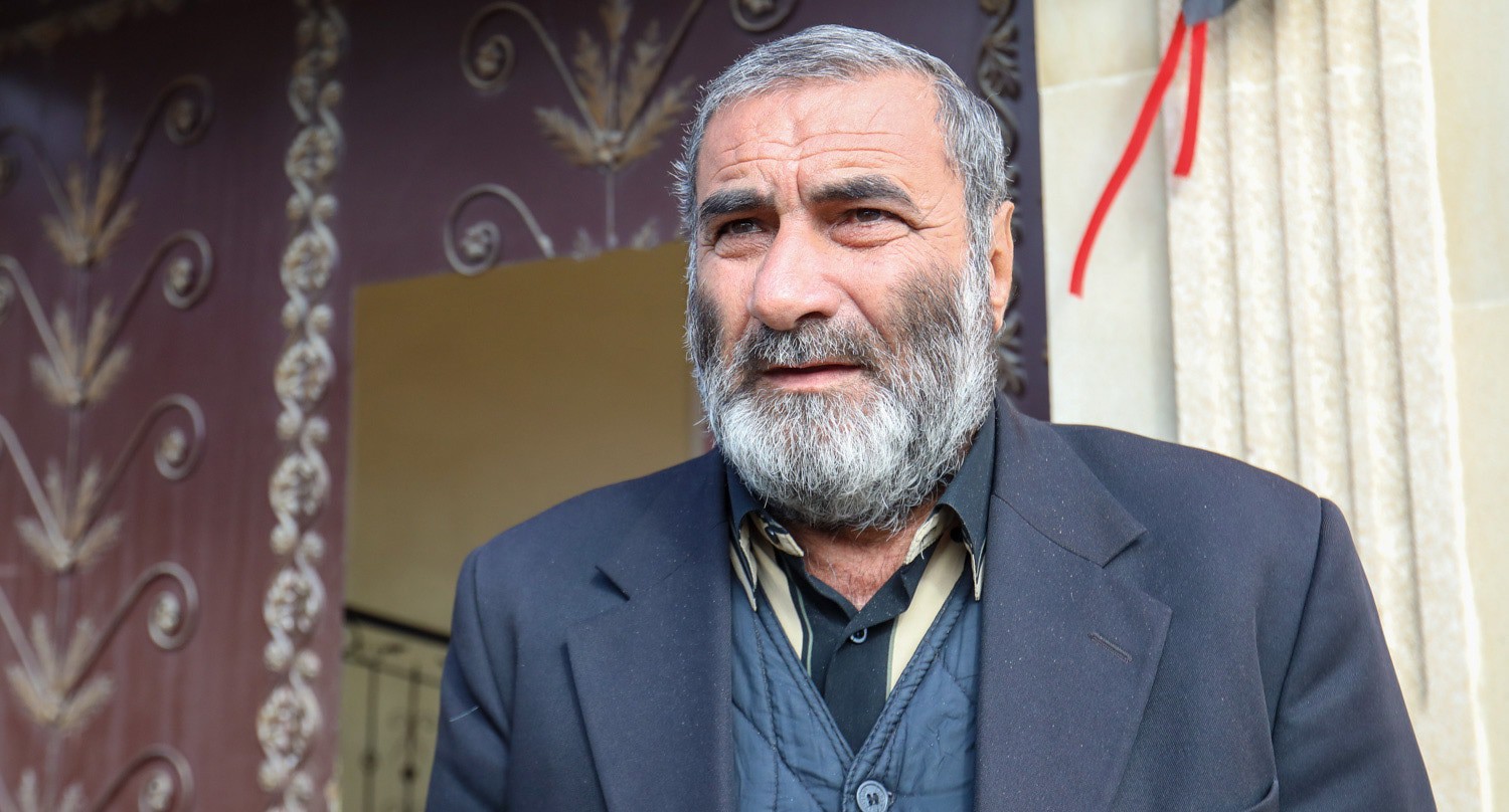 Теймур Аскеров, потерявший пятерых близких, едва сдерживает слезы.