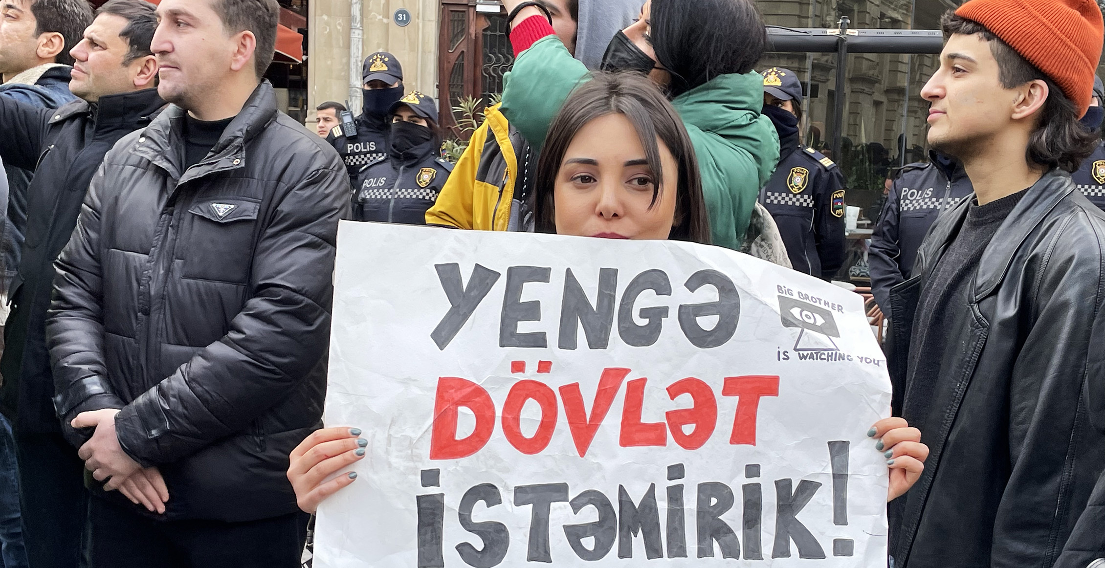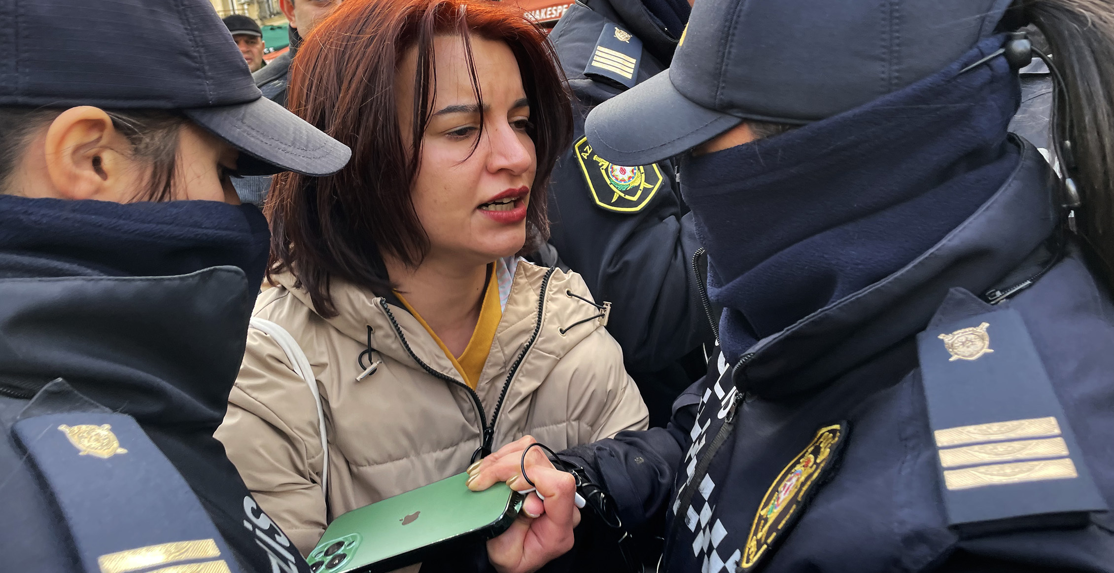 Одна из организаторов акции Айтадж Тапдыг зачитывает заявление акции