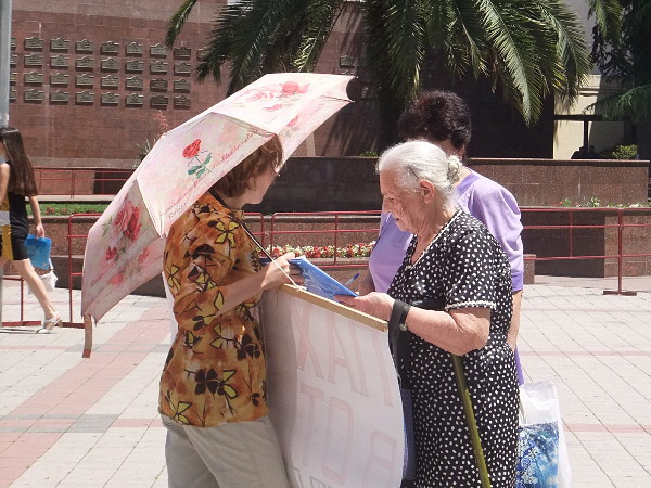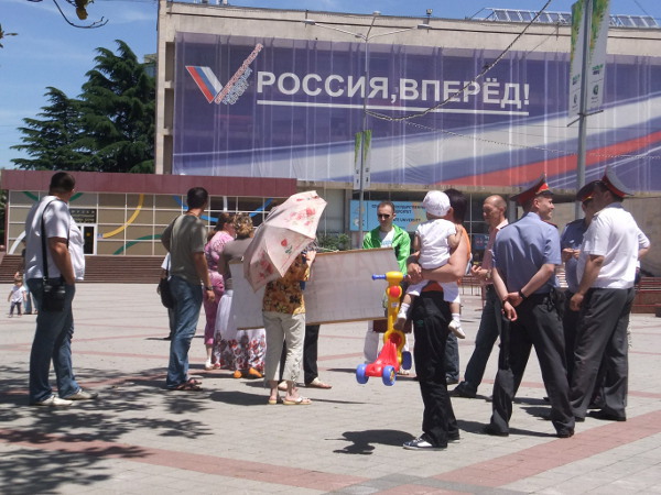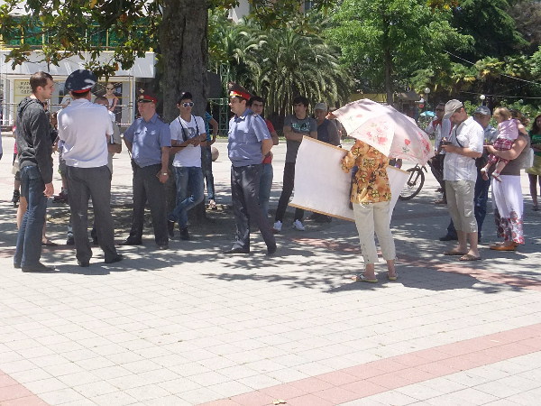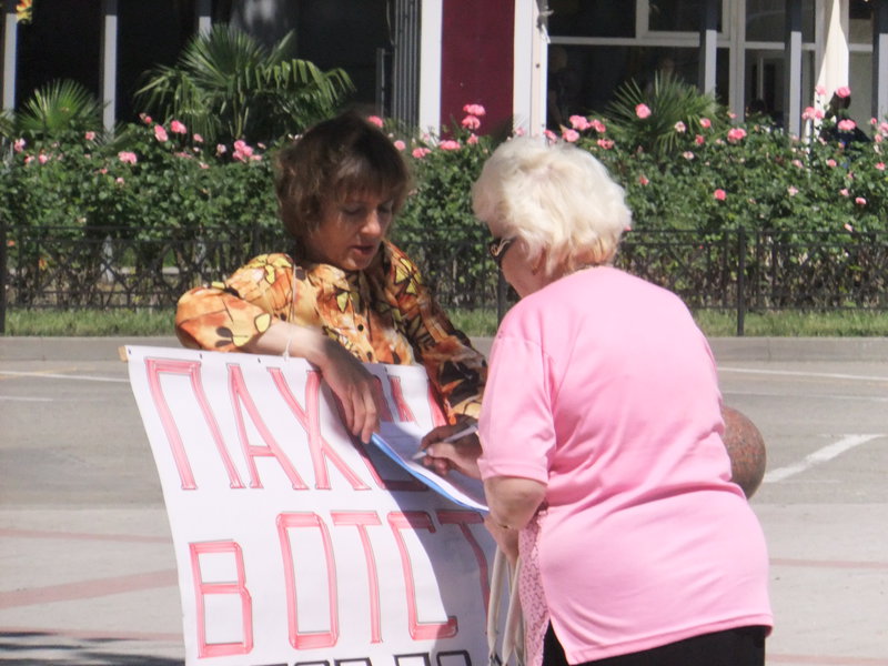 28 мая в 10-00 Ирина Бровкина начала очередной одиночный пикет за отставку мэра Сочи Анатолия Пахомова на площади у мэрии.