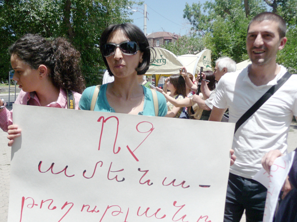 Акция с требованием наказания виновных в избиении военных врачей в ресторане "Арснакар". Ереван, 22 июня 2012 г. Фоторепортаж корреспондента "Кавказского узла" Армине Мартиросян
