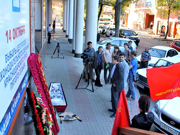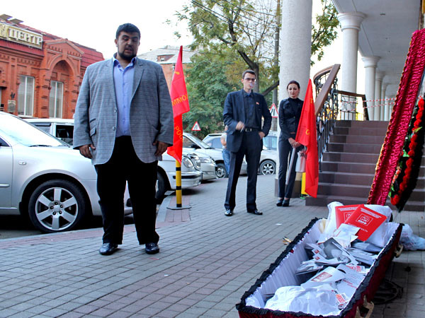 Представители "Единой России" и "Коммунистов России" провели акции по итогам прошедших выборов в заксобрание Краснодарского края. 15 октября 2012 г. Фоторепортаж корреспондента "Кавказского узла" Никиты Серебрянникова