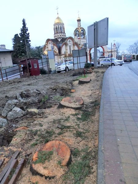 В районе храма на улице Виноградной строителями была полностью уничтожена зеленая зона. Сочи, 20 февраля 2013 г. Фоторепортаж корреспондента "Кавказского узла" Светланы Кравченко