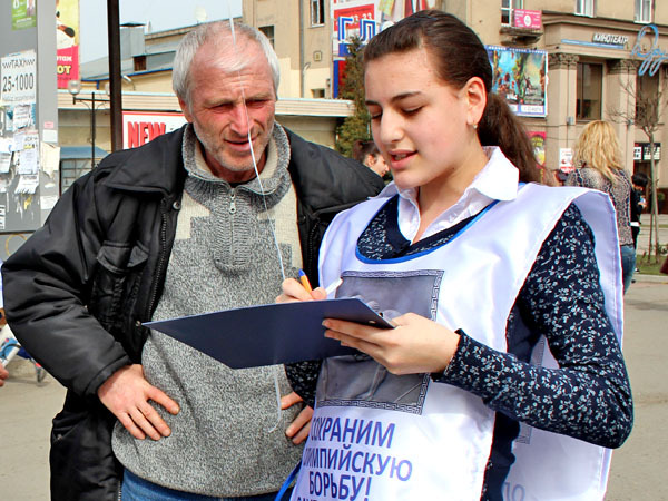 Флеш-моб за сохранение борьбы в качестве олимпийского вида спорта. Владикавказ, 15 марта 2013 г. Фоторепортаж корреспондента "Кавказского узла" Эммы Марзоевой